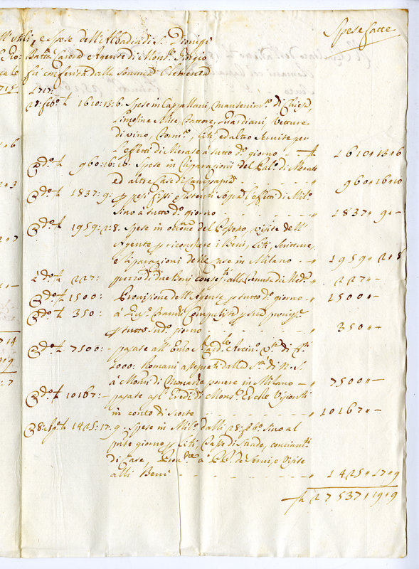 Spese sostenute per conto dell'abazia di San Dionisio di Milano (1717)