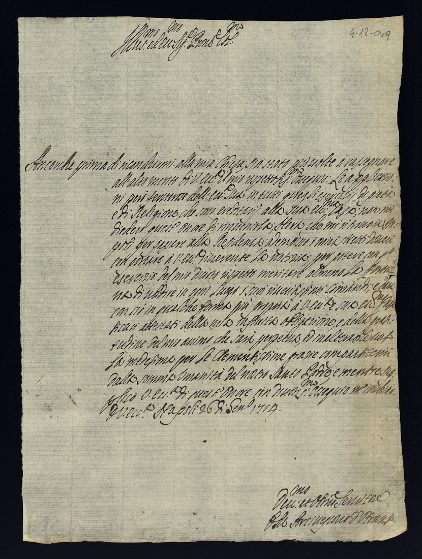 Lettere di negozio e di complimento all'Illustrissima Eccellenza dell'anno 1704. Semestre primo