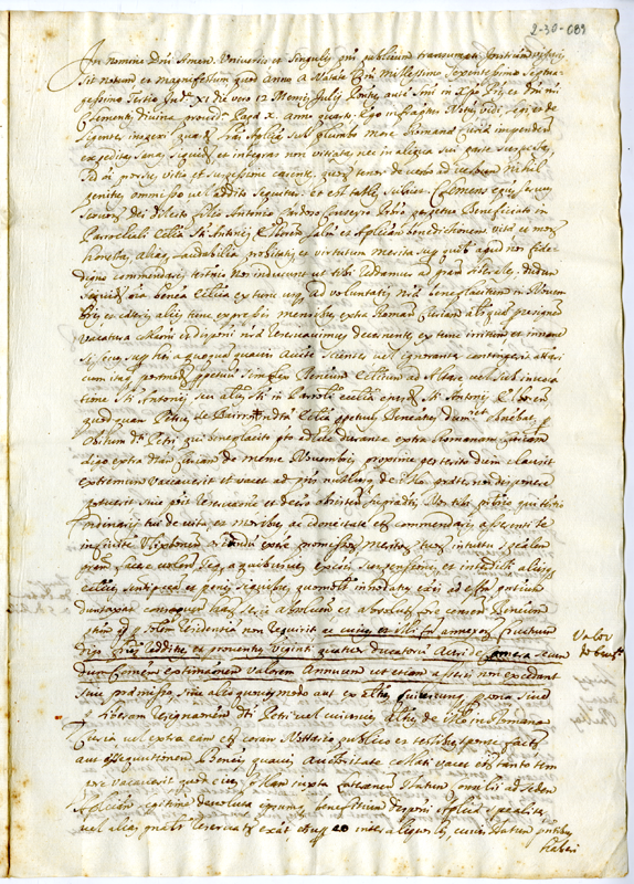 Atto notarile di Innocenzo de Laurenzi relativo al conferimento di un beneficio semplice nella chiesa parrocchiale di Evora a favore di Antonio Cardoso Conseyro (1670-1676)