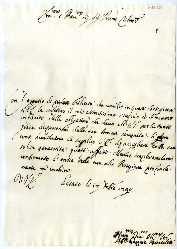 Lettera di Gaspare Benedetti al cardinale Annibale Albani (1730 dicembre 17)