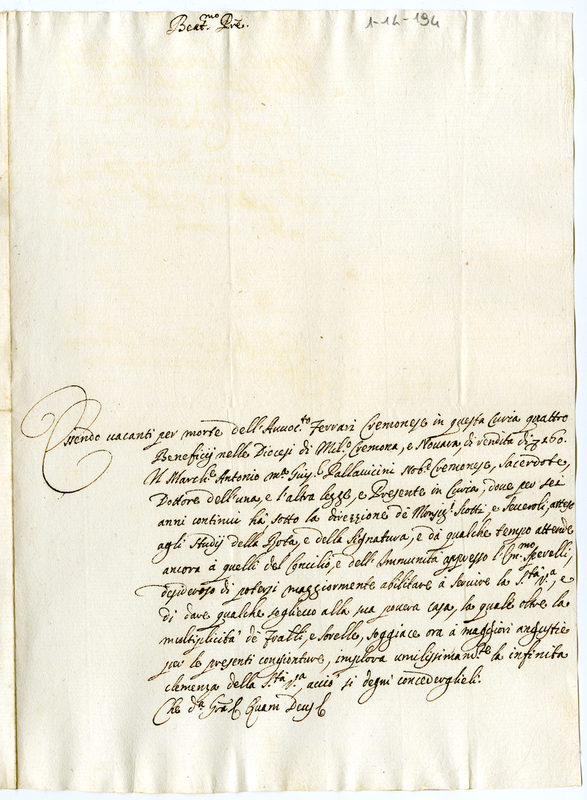 Supplica di Antonio Maria Giuseppe Pallavicini a Clemente XI