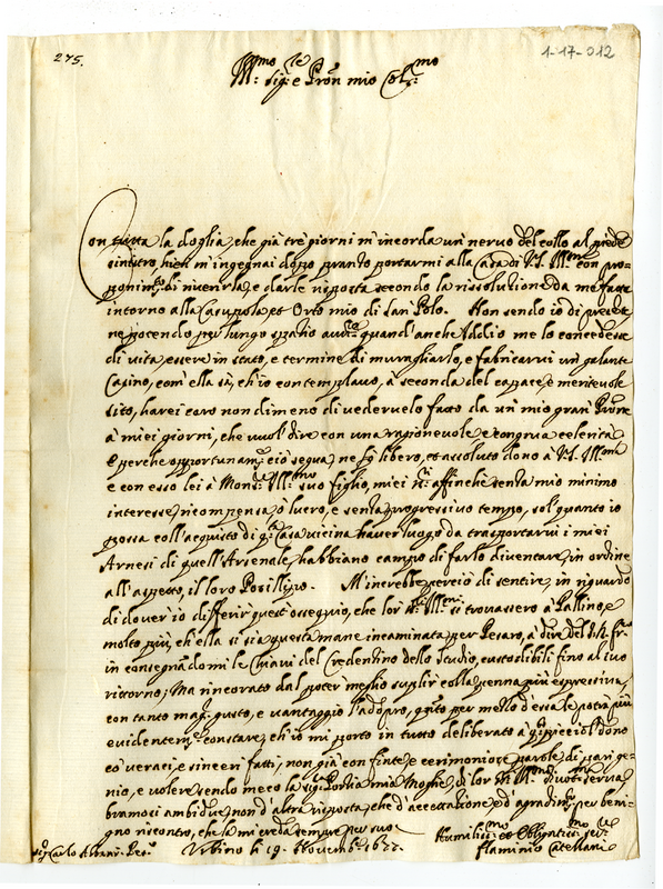 Lettera di Flaminio Catellani a Carlo Albani (1677 novembre 19)