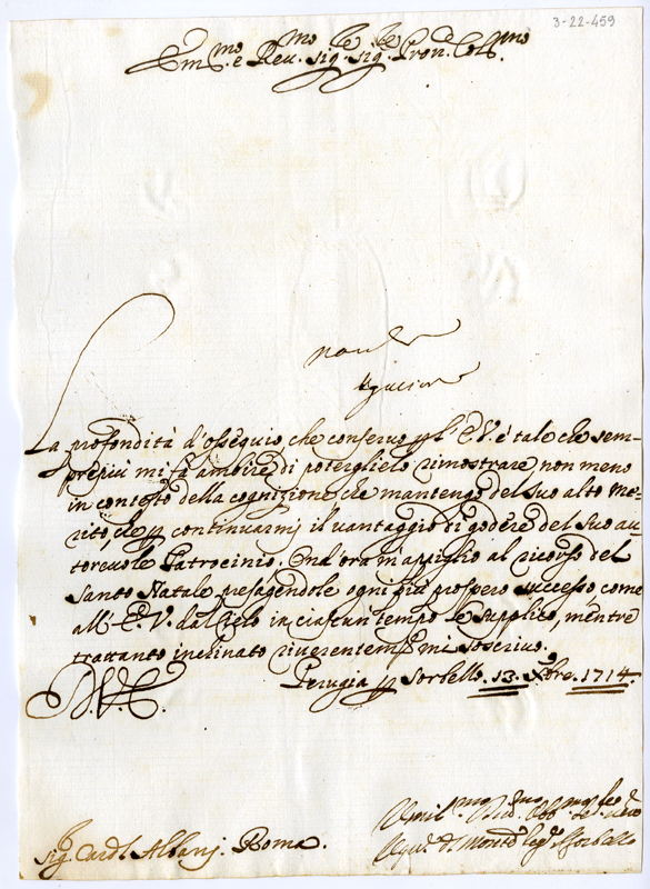 Lettera al cardinale Annibale Albani (1714 dicembre 13)