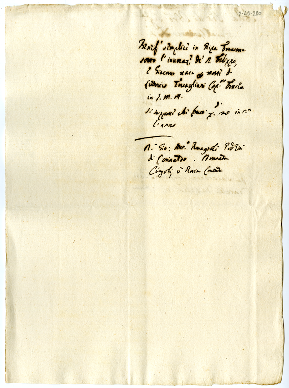 Annotazione di papa Clemente XI sui benefici semplici in Ripatransone vacanti per morte di Ludovico Tovagliani e su don Giovanni Antonio Romagnoli podestà di Corinaldo (1700-1721)