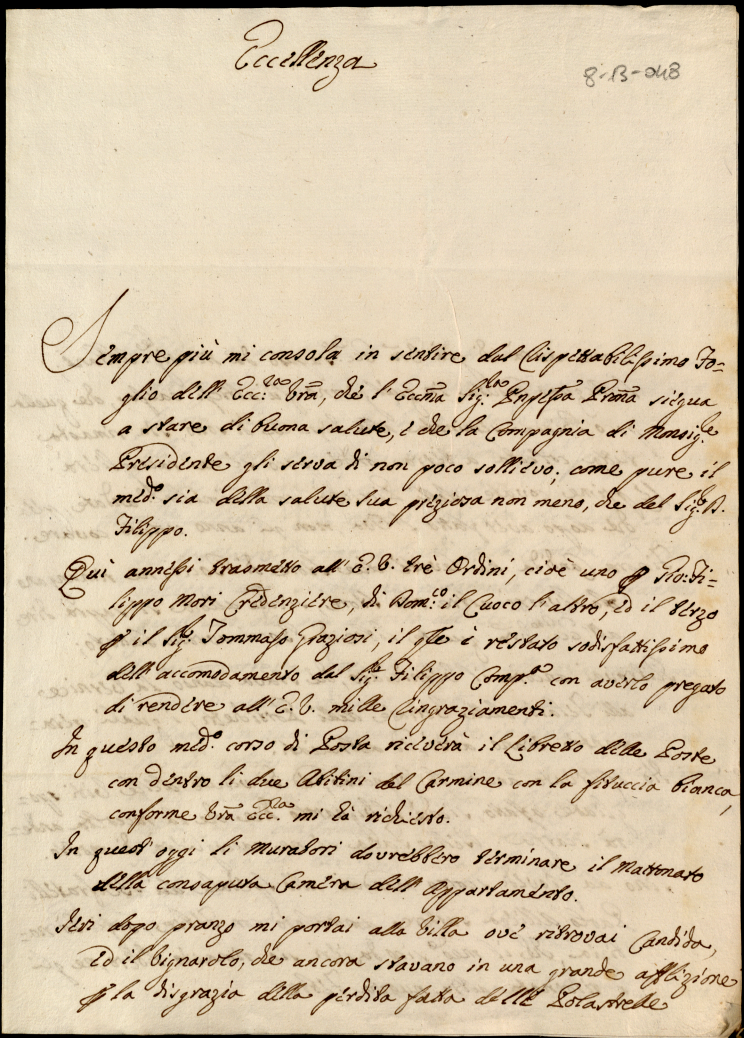 Lettere diverse ricevute in Colbordolo, Pesaro e Senigallia nel 1784