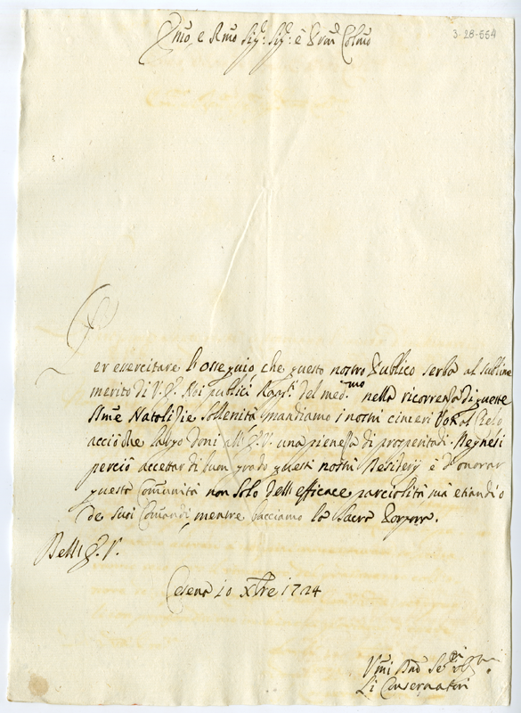Lettera dei conservatori della città di Cesena al cardinale Annibale Albani (1724 dicembre 10)