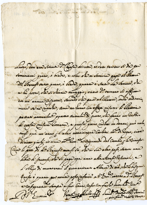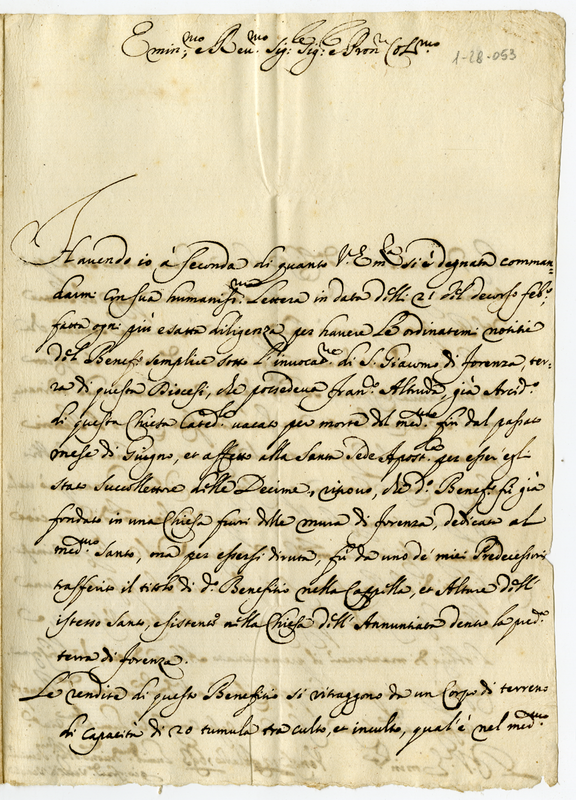 Lettera di Giovanni Francesco Vescovo di Venosa un Cardinale (1693 marzo 12)