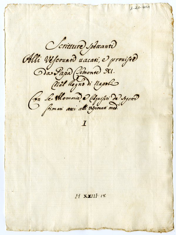 Scritture spettanti alli vescovati vacanti, e proviste da Papa Clemente XI nel Regno di Napoli con le memorie, e requisiti de sogetti stimati atti alli vescovati medesimi