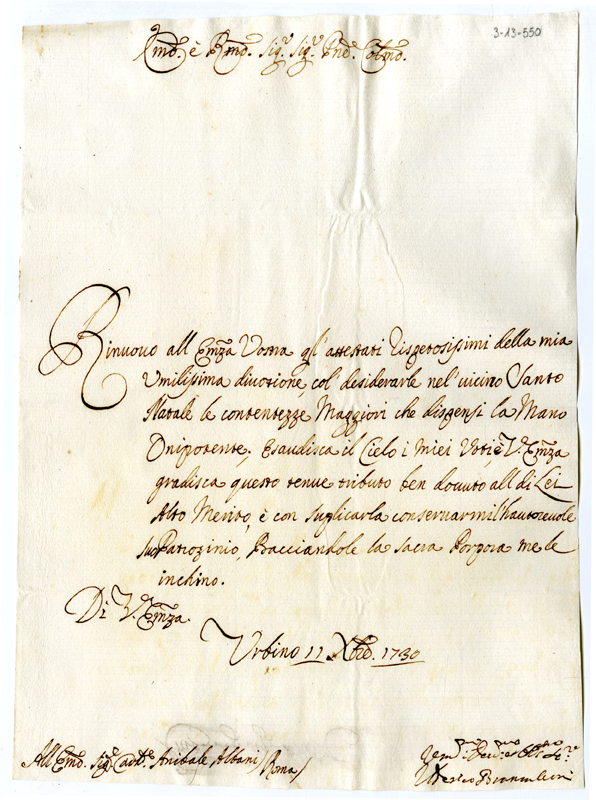 Lettera di Ulderico Brancaleoni al cardinale Annibale Albani (1730 dicembre 11)