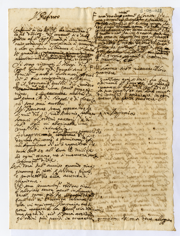 Minuta di lettera scritta da Malatesta Albani con varie notizie