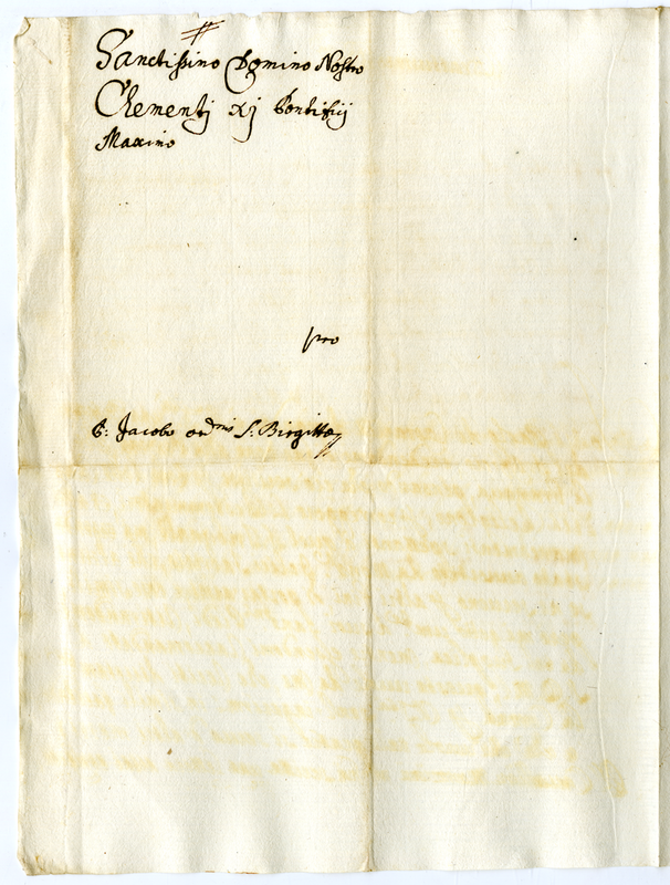 Lettera di Giacomo dell'ordine di Santa Brigida a papa Clemente XI (1700-1721)