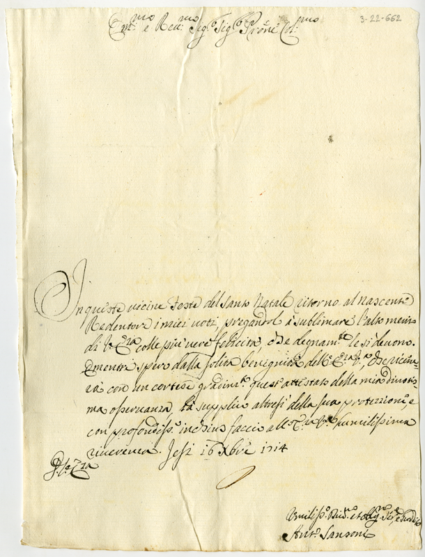 Lettera di Antonio Sansoni al cardinale Annibale Albani (1714 dicembre 16)