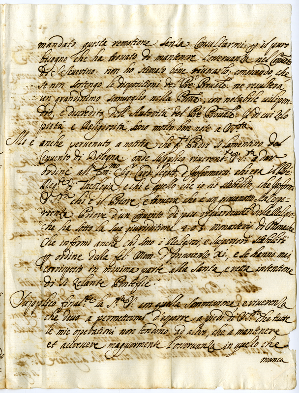 Lettera di Antonio Cloche Maestro Generale dell'ordine de Predicatori a Papa Alessandro VIII (1689-1691)