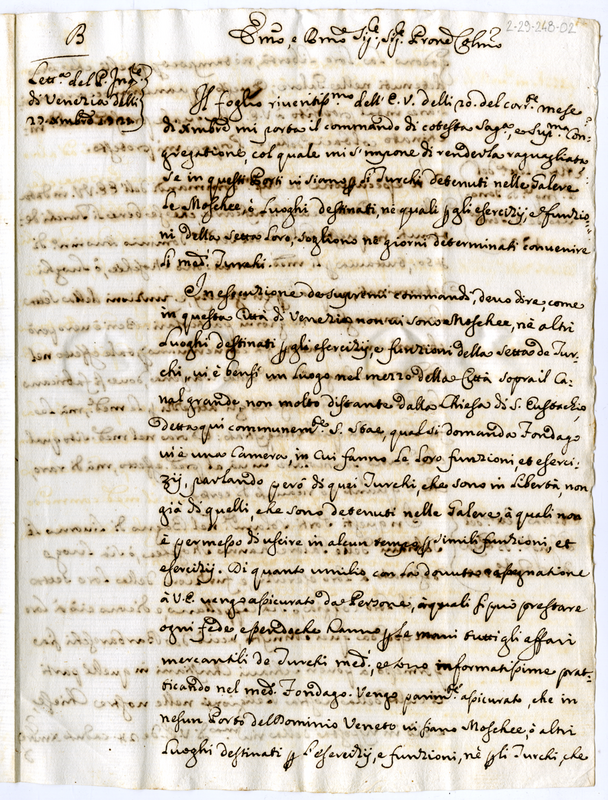 B) Lettera dei padri inquisitori di Venezia, Genova e Pisa (1721)
