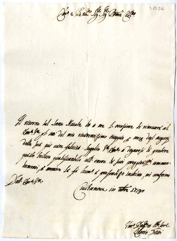 Lettera di Liborio Gatti al cardinale Annibale Albani (1730 dicembre 18)