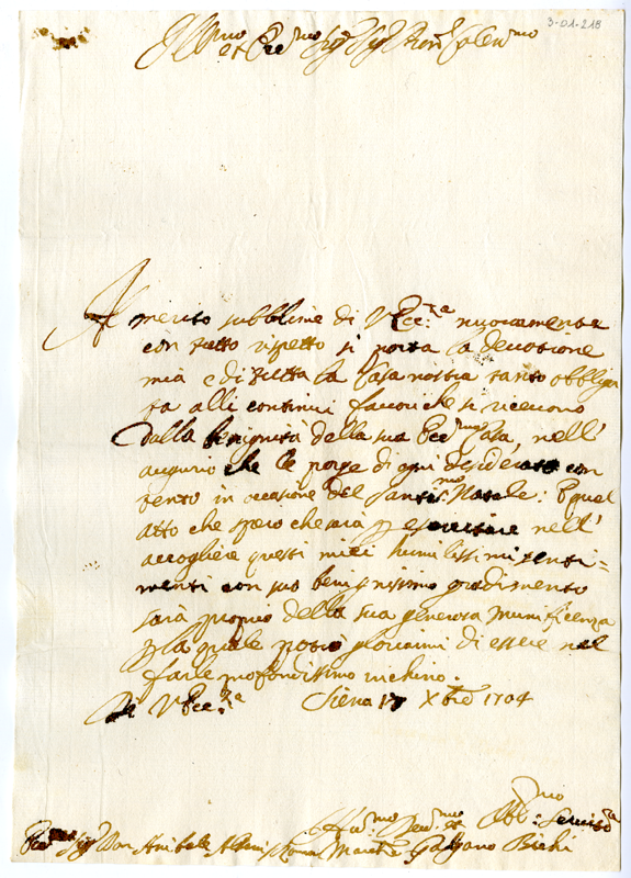 Lettera di Galgano Bichi ad Annibale Albani (1704 dicembre 17)