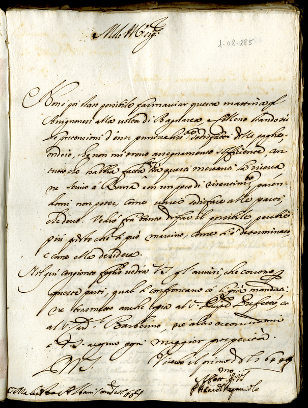 Lettera del cardinale Rapaccioli Francesco Angelo a Malatesta Albani (1644 gennaio 1)