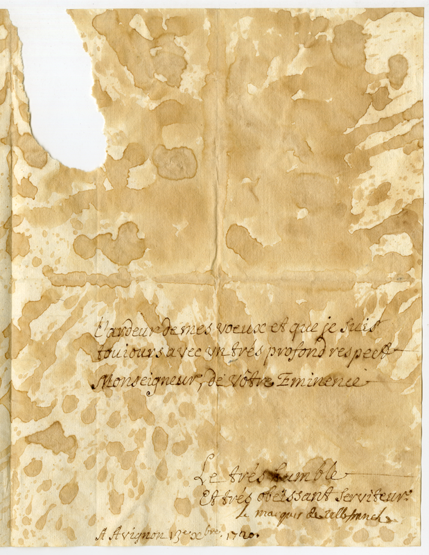 Lettera del marchese di Villafranca al cardinale Annibale Albani (1720 dicembre 13)
