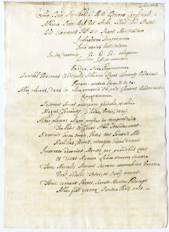 Epigramma in onore del cardinale Annibale Albani