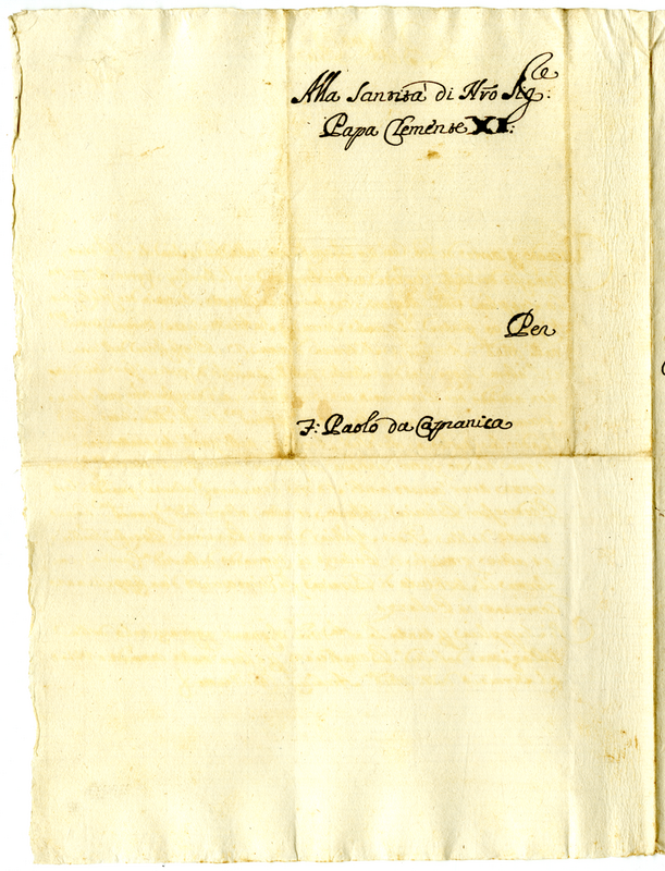 Lettera di fra Paolo da Capranica a Clemente XI (1700-1721)