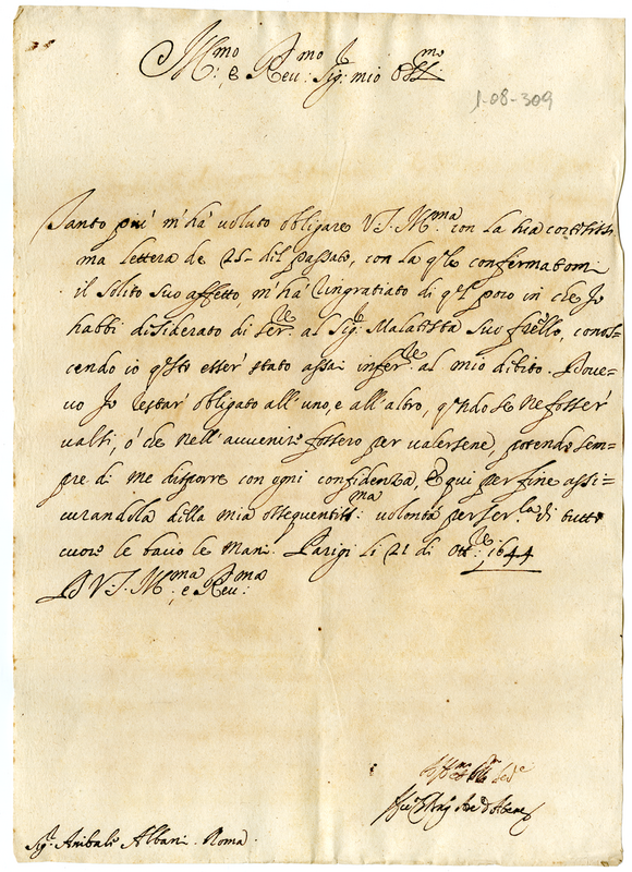 4. Lettera dell'abate d'Atene ad Annibale Albani (1644 ottobre 21)