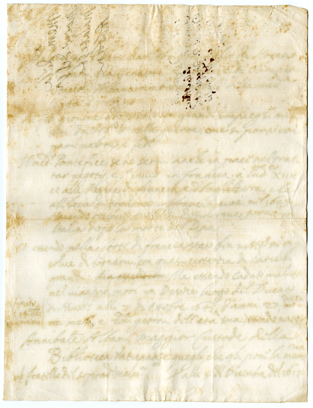 Nascita, impieghi, morte di Malatesta Albani, foglio scritto da Orazio Albani