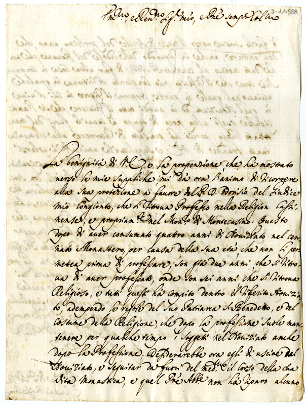 Chiede che intervenga in favore del congiunto padre don Dionisio del Giudice della religione cassinese.