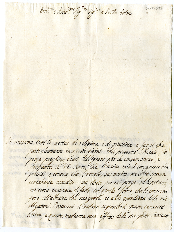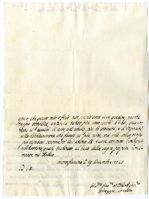 Lettera di Giuseppe Sandou al cardinale Annibale Albani (1725 dicembre 19)
