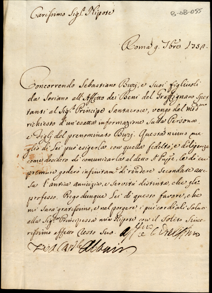 Lettere ricevute in Urbino dal Signor Principe Orazio Albani ultimo di questo nome nell'anno 1752