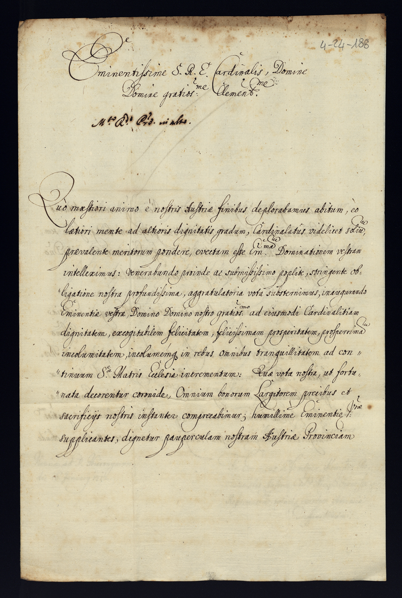 3. Lettere di congratulazioni per la promozione di sua eccellenza al cardinalato