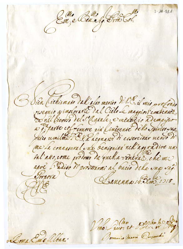 Lettera al cardinale Annibale Albani (1718 dicembre 14)