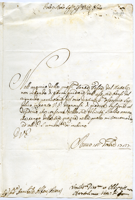 Lettera di Bartolomeo vescovo di Ruvo al cardinale Annibale Albani (1727 dicembre 12)