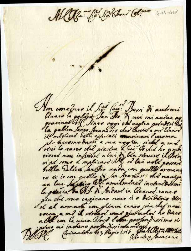Lettera di Vincenzo Ancaiani al Cardinale Annibale Albani (1716 maggio 23)