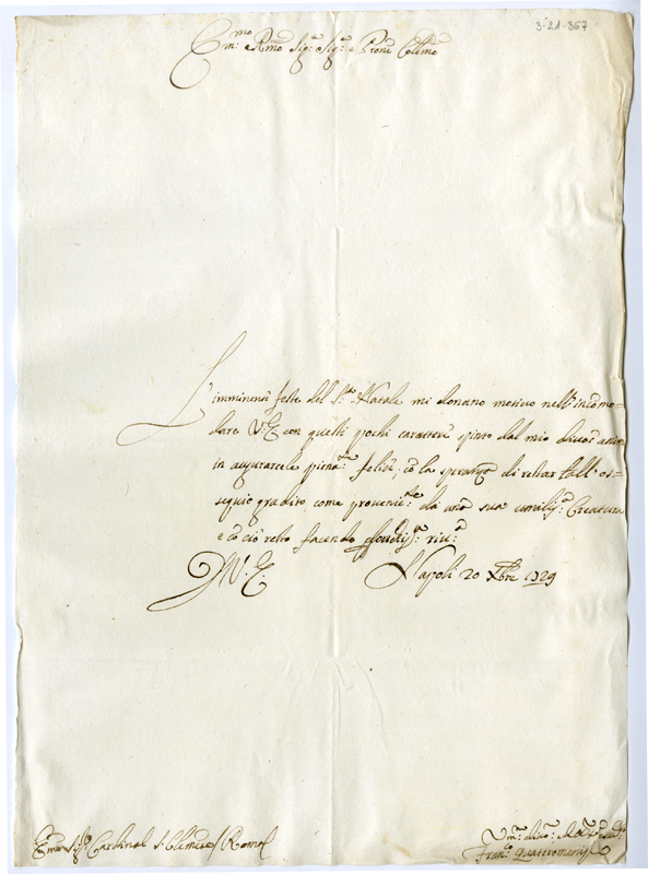 Lettera di Francesco Quattromani al cardinale Annibale Albani (1729 dicembre 20)