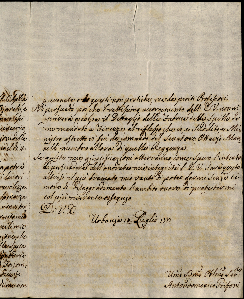 Lettere ricevute in Urbino nella permanenza in Urbino nei mesi di maggio, giugno e luglio 1777