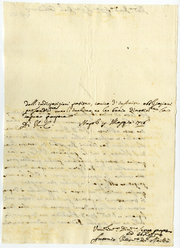 Lettera di Antonio Vescovo di Nardò al Cardinale Annibale Albani (1716 maggio 19)