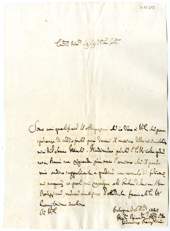 Lettera di Vincenzo Bargilini al cardinale Annibale Albani (1730 dicembre 16)