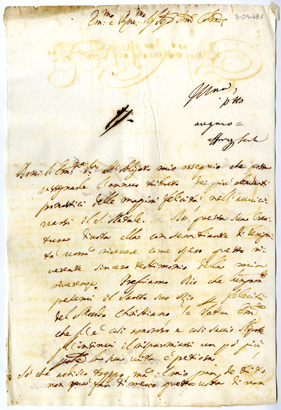 Lettera di Fortunato vescovo di Treviso al cardinale Annibale Albani (1713 dicembre 12)
