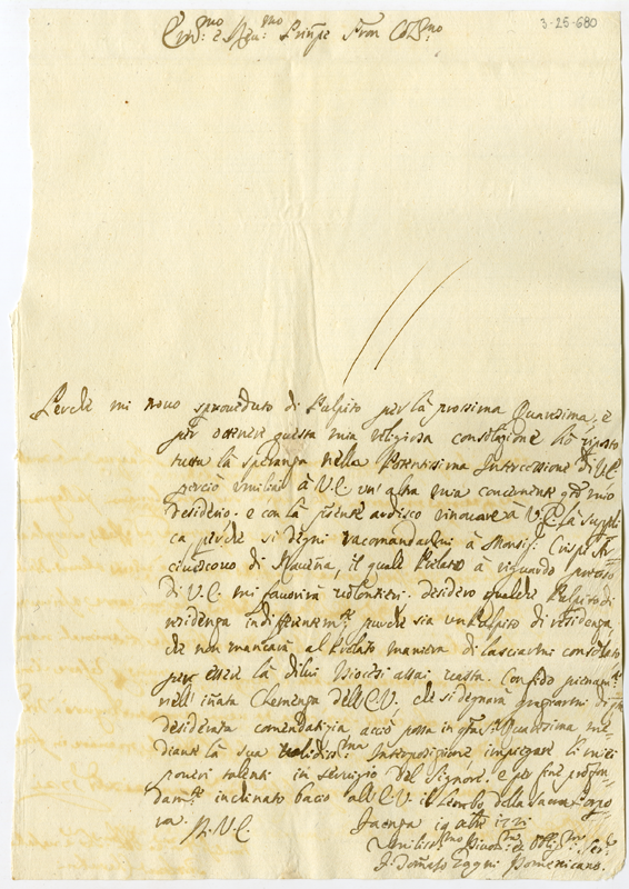 Lettera di fra Tommaso Gagni al cardinale Annibale Albani (1721 dicembre 14)