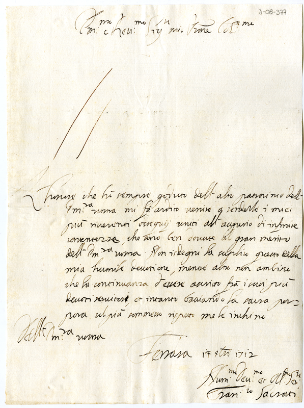 Lettera di Francesco Sacrati al cardinale Annibale Albani (1712 dicembre 11)