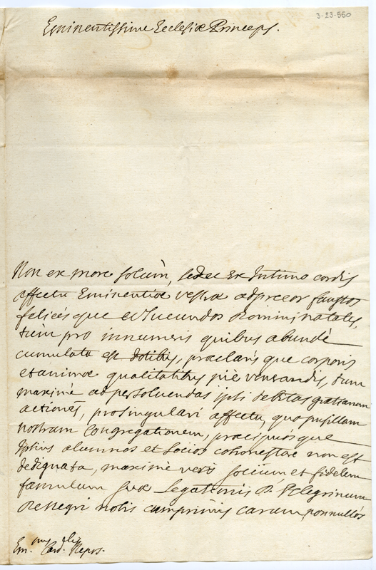 Lettera di Joannes Bonnet al cardinale Annibale Albani (1717 dicembre 1)