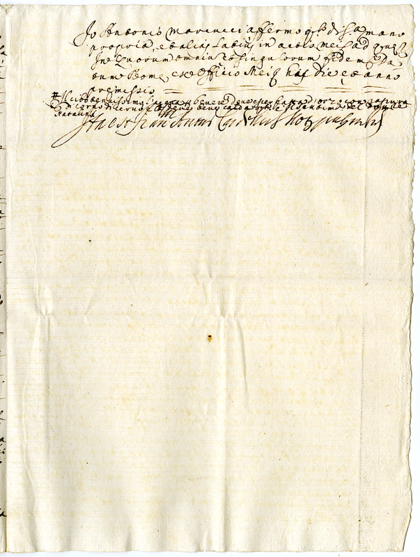 Attestazione del tribunale pontificio di Roma in favore di Carlo Marti (1700-1721)