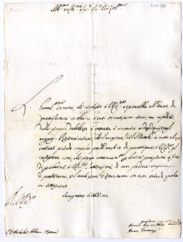 Lettera di Antonio Fantuzzi ad Annibale Albani (1705 dicembre 16)