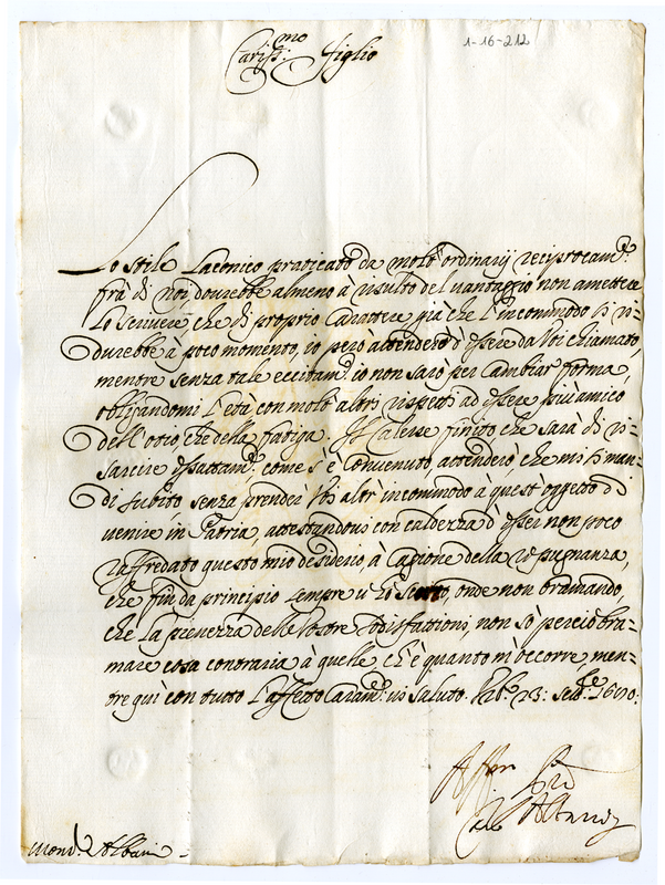 Lettera di Carlo Albani a Giovanni Francesco Albani (1680 settembre 23)