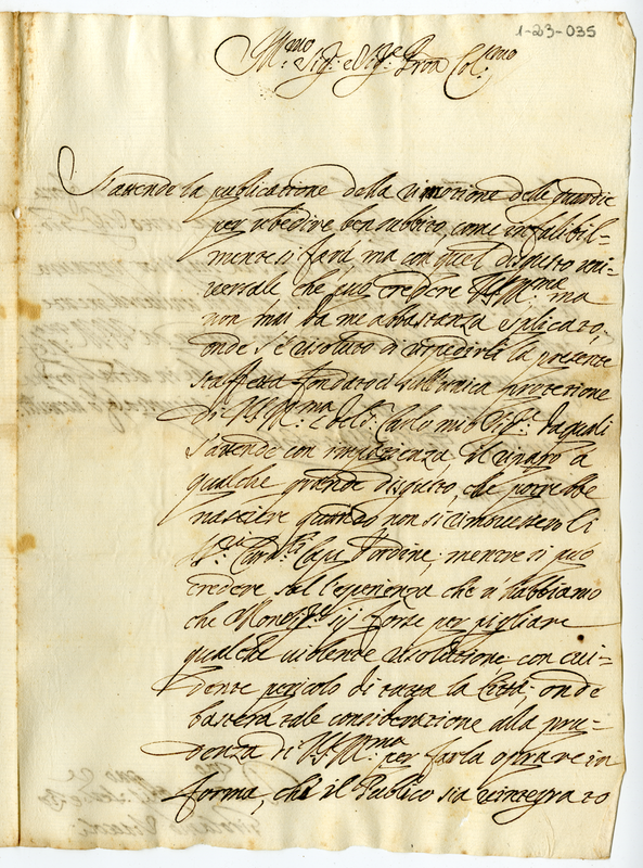 Mostra al canonico Albani la disponibilità di obbedire alle ingiunzioni, ma anche il disgusto che esse provocavano ad Urbino. Per la qual cosa si affidano alla mediazione di monsignor Albani e di suo padre Carlo
