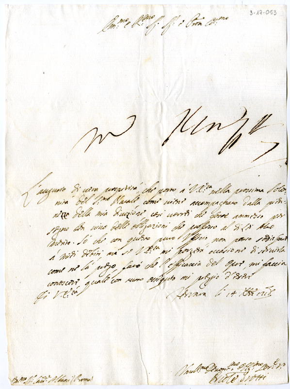 Lettera di Ercole Trotti al cardinale Annibale Albani (1718 dicembre 14)