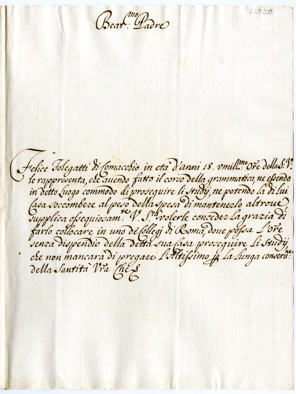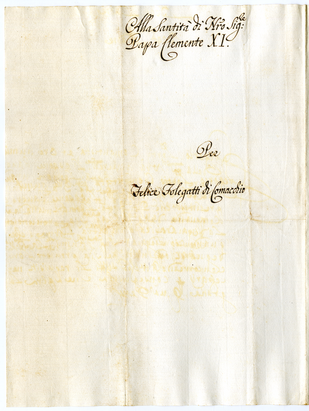 Lettera di Felice Folegatii a Clemente XI (1700-1721)