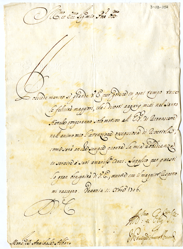 Lettera del principe di Samo Brandi ad Annibale Albani (1706 dicembre 11)