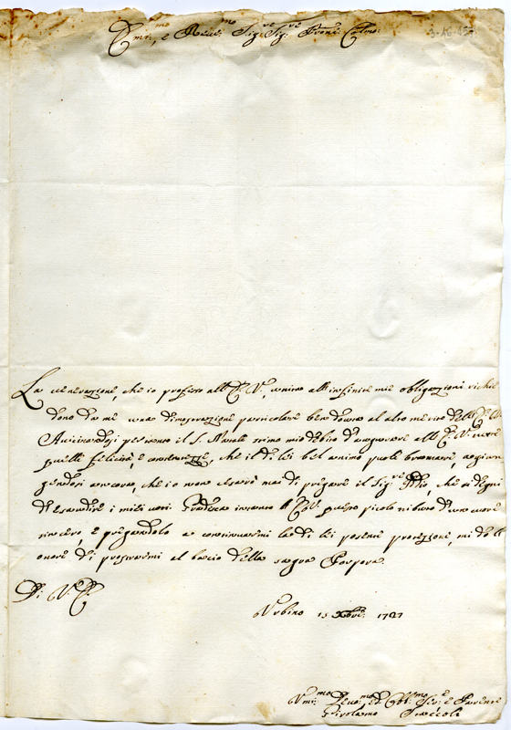 Lettera di Girolamo Staccoli al cardinale Annibale Albani (1727 dicembre 15)