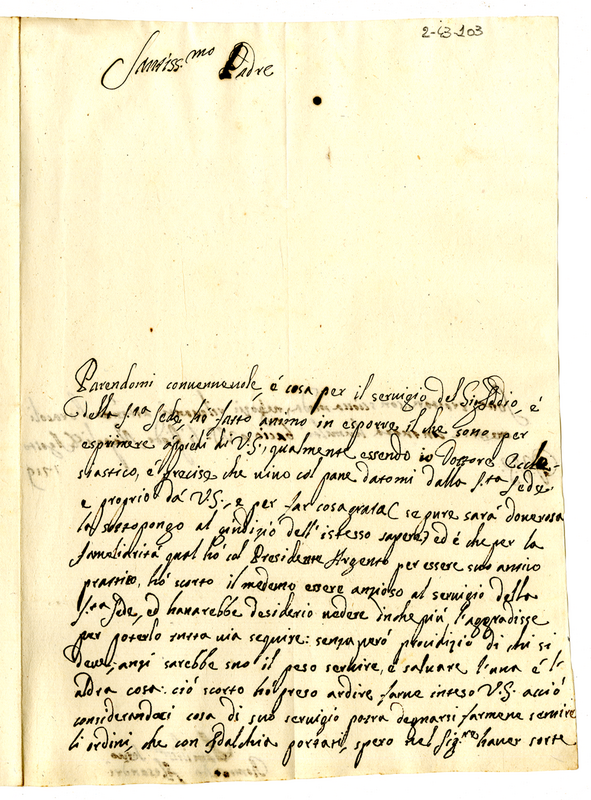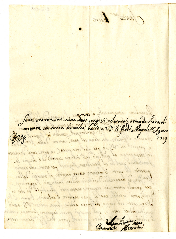 Lettera di Romoaldo Alessandri a papa Clemente XI (1719 agosto 8)